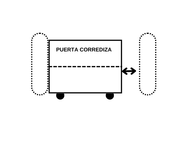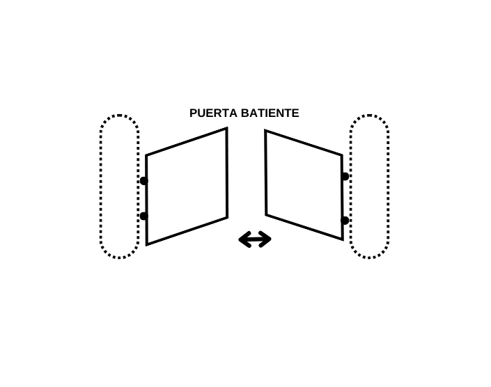 - Puerta de una o dos hojas manuales, apertura por arrastre o empuje